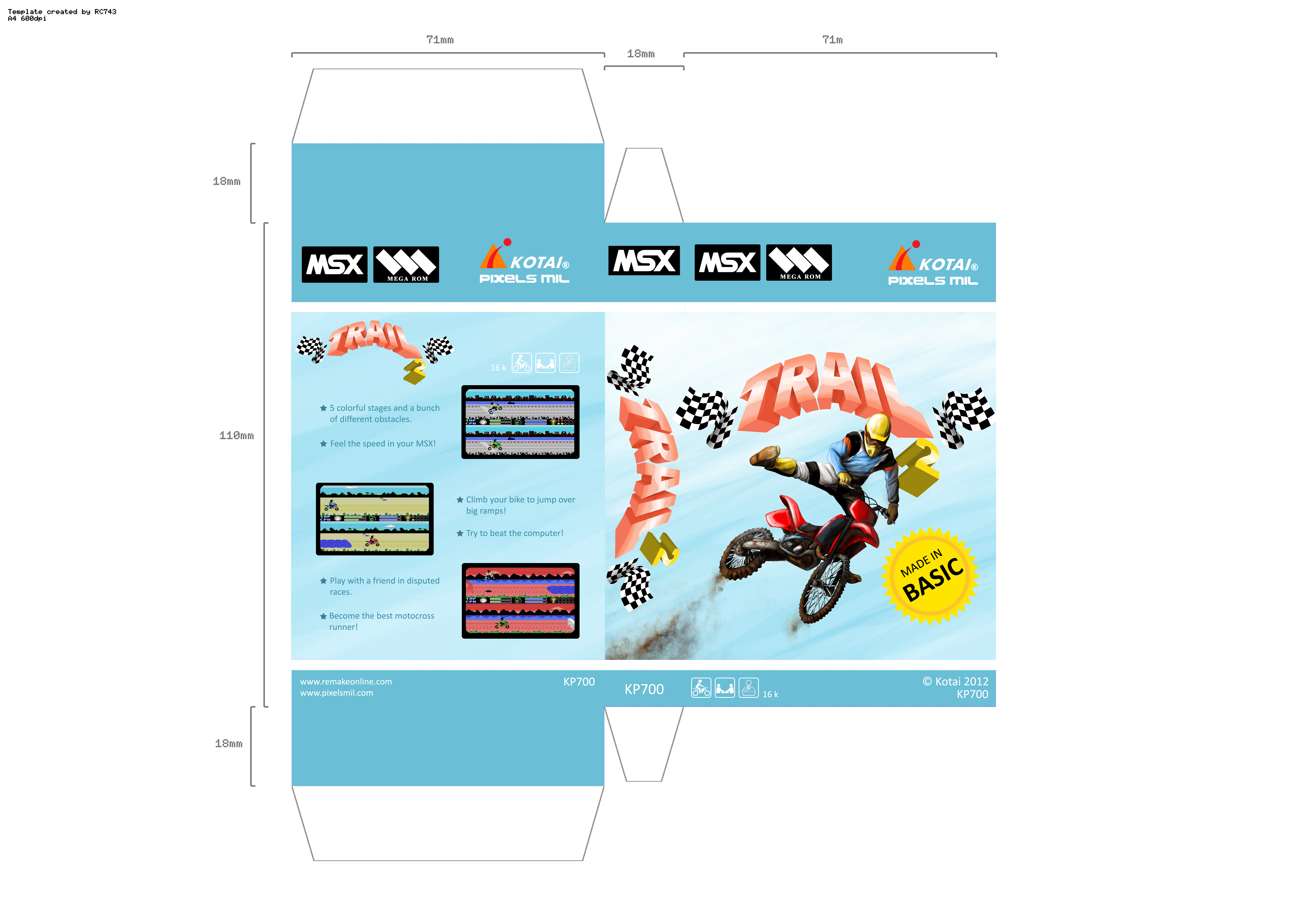Observaciones: Nueva versión de nuestro mejor juego de MSX: Trail. El cambio más importante respecto a Trail es que este tiene scroll en vez de ir pasando pantallas.
