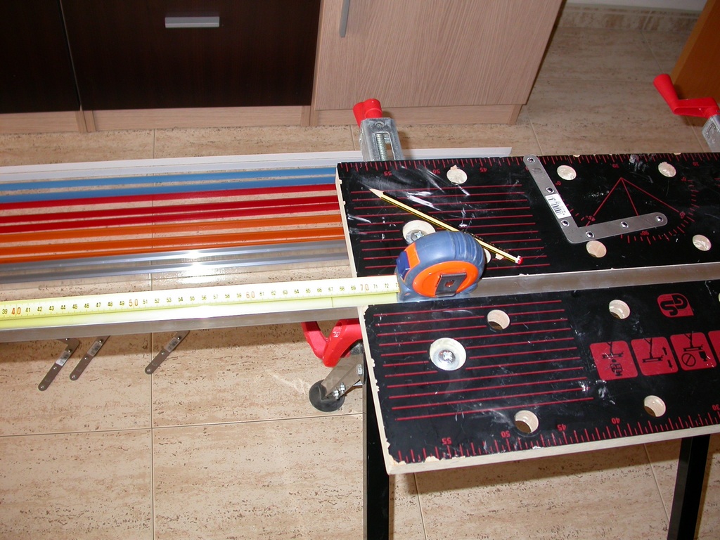 Lo primero que tenemos que hacer es construir el marco de la vitrina de aluminio, para ello cortaremos de una de las barras de aluminio los cantos superior e inferior del marco.
