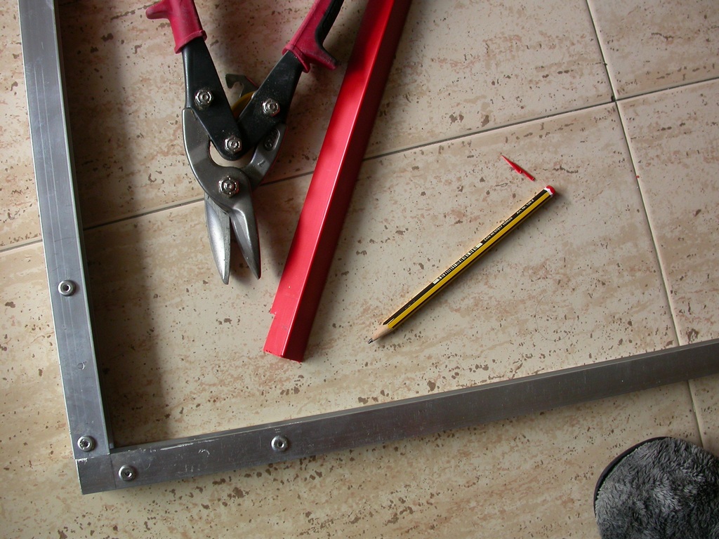 Para ensamblar el marco de aluminio he optado por poner escuadras de acero inoxidable que quedarán escondidas dentro de la U de aluminio e irán remachadas por la parte trasera del marco.