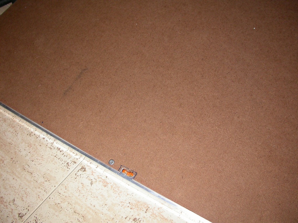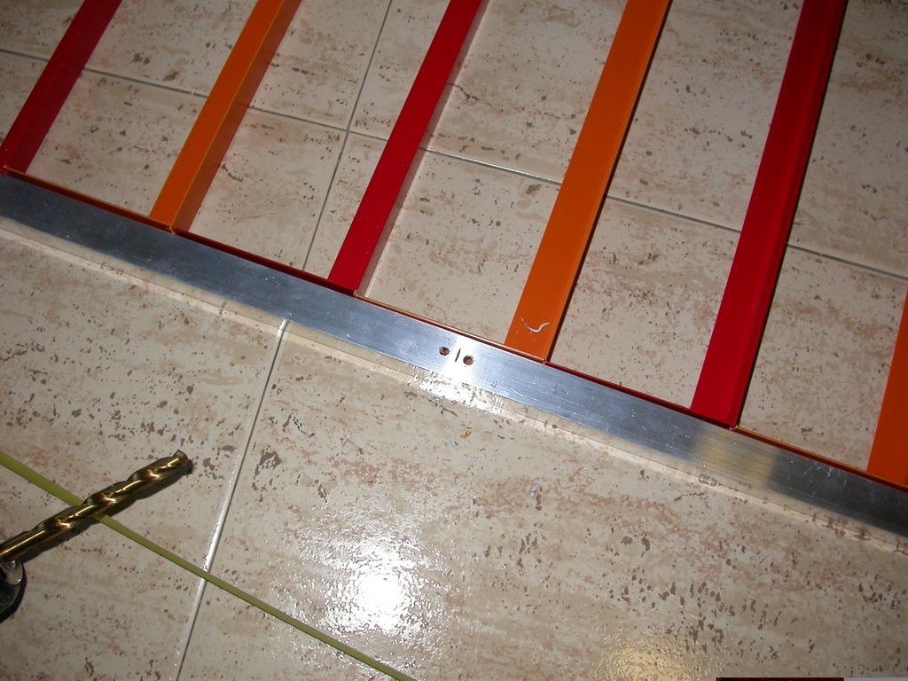 Una vez tenemos todas las filas y laterales puestos sin que sobre ni falten huecos por cubrir ya apodemos empezar a pegar los ángulos de PVC sobre el aluminio. Dentro de la U de aluminio he puesto todo un cordón de adhesivo y he ido poniendo primero la fila y luego los laterales la la parte de arriba de esa fila.