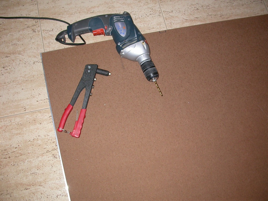 La forma de ponerlo será con remaches. Antes de remachar nada nos marcamos en el tablex la zona donde hemos hecho los agujeros para colgar la vitrina.