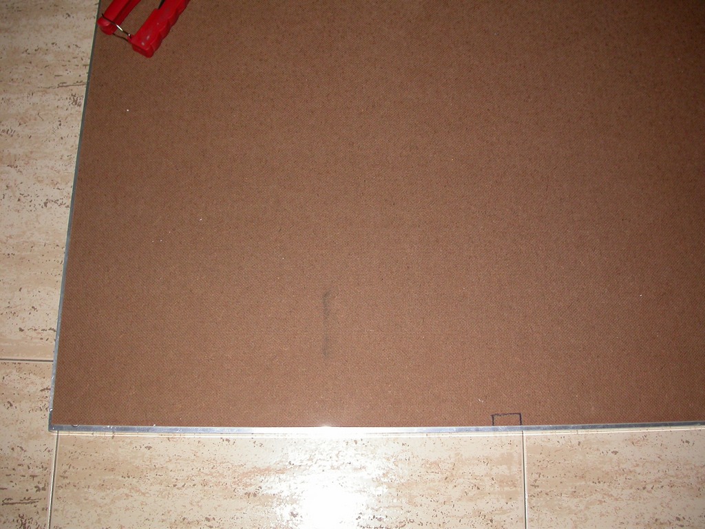 Ahora toca poner el fondo de la vitrina para que al colgarla no se vea la pared. Para ello he utilizado un tablex de 71 x 156 (el marco es de 72 x 157) para que quede medio centímetro y no se salga el tablex por los lados.