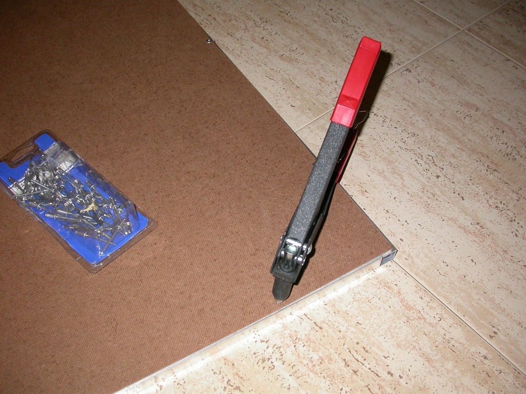 Una vez tenemos los agujero ponemos la escuadra en el interior del marco y lo remachamos. Hacemos la misma operación en las 4 esquinas para conseguir un marco rectangular.